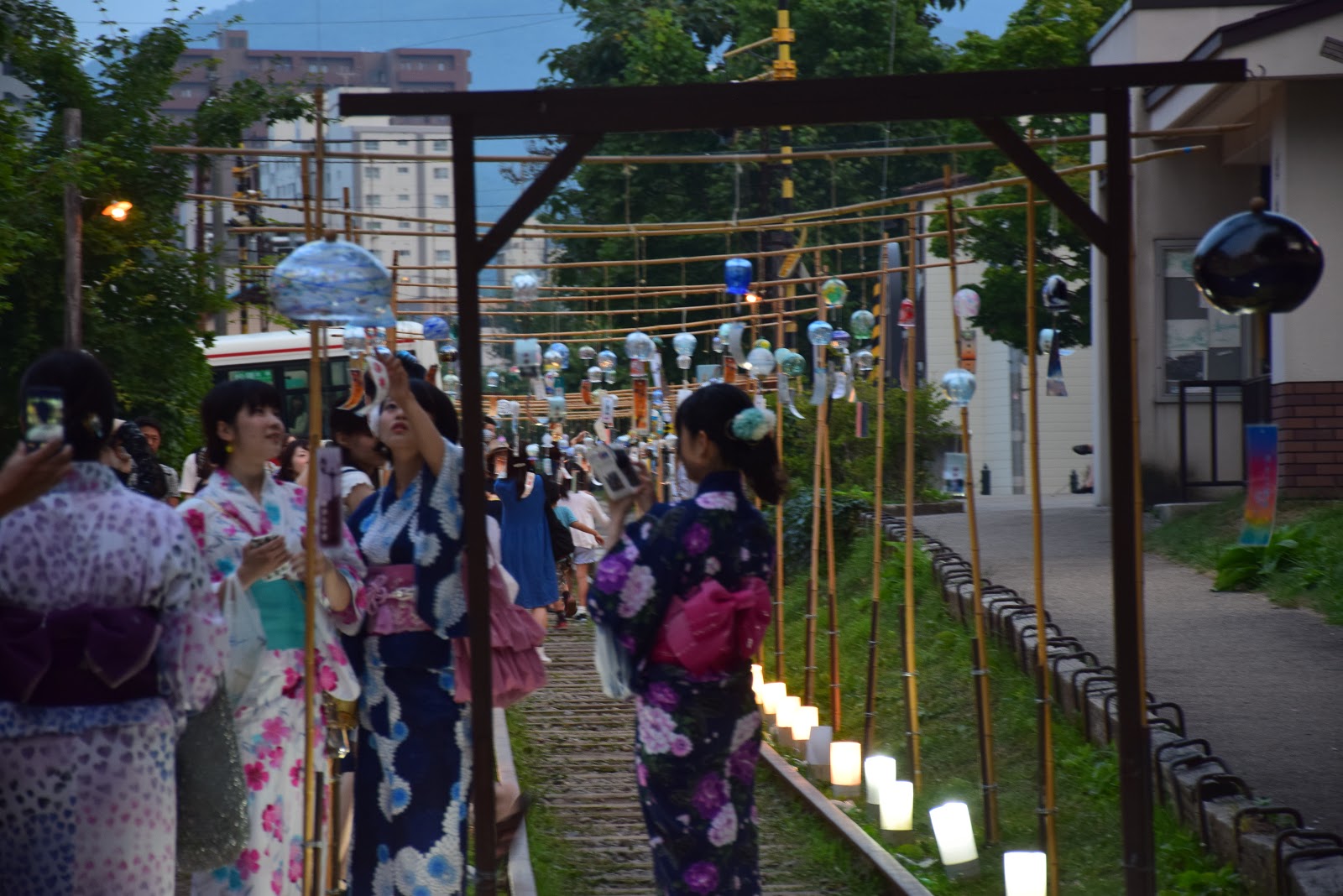 2017年與潮祭同時舉行的小樽玻璃市集,不僅有許多玻璃店進駐,還有風鈴展示供遊客欣賞,特別是晚上打上燈光後,十分浪漫。