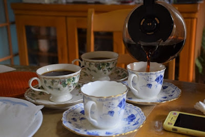 客廳有一台舊式的暖爐,上頭是可以燒開水的哦!