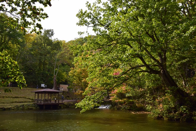 湧泉公園的紅葉和湧泉特別有名,這次拍照時剛好在入秋前,葉子呈現稍微偏黃的顏色,入秋之後樹葉會轉成更鮮明的紅或黃色,非常值得來看看!